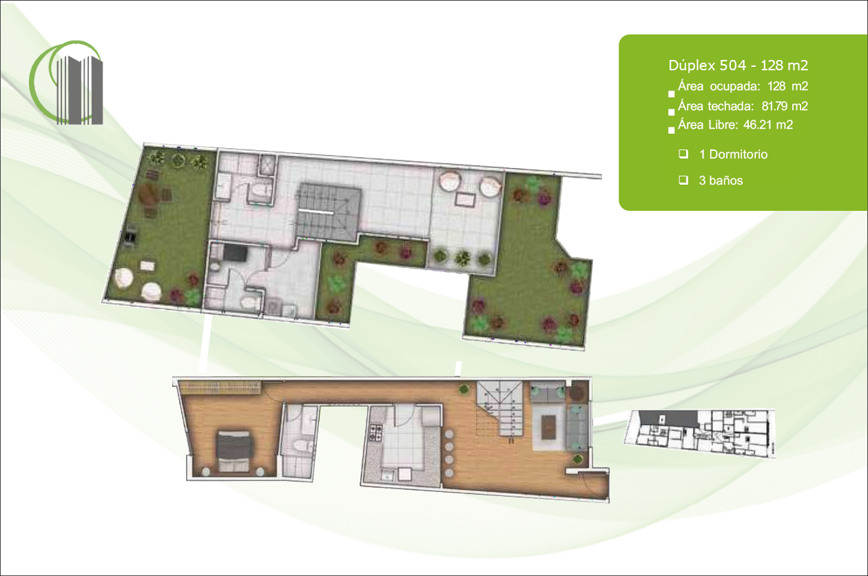 h. La edificación que cuenta con 10 Dptos. de 03 Dormitorios, 04 Dptos. de 02 Dormitorios, y 05 Dptos. de 01 Dormitorio (menos del 35% de viviendas) teniendo un total 19 unid. de viviendas, agrupadas en 02 Sectores compuestos de 15 departamentos Flat y 04 departamentos Dúplex, de los cuales 09 se ubican en la parte de adelante con vista exterior a la Avenida Alfredo Franco y los otros 10 se ubican en la parte posterior con vista hacia un pozo de iluminación al interior de la edificación, además cuenta con un área destinada a estacionamiento ubicados en el semi-sótano, sótano-01 y sótano-